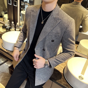 British Style Double Breasted Tuxedo Plaid Blazer Jackets