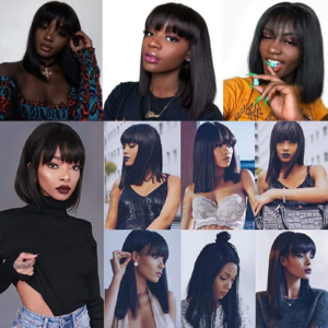Brazilian Straight Human Hair Bob Wigs with Bangs Non Lace Full Machine Made Human Hair Cheap Remy Wigs for Black Women