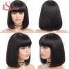 Human Hair Wig with Bangs Brazilian Straight Short Bob Wigs with Blunt Cut Remy Hair Full Machine Made Wig