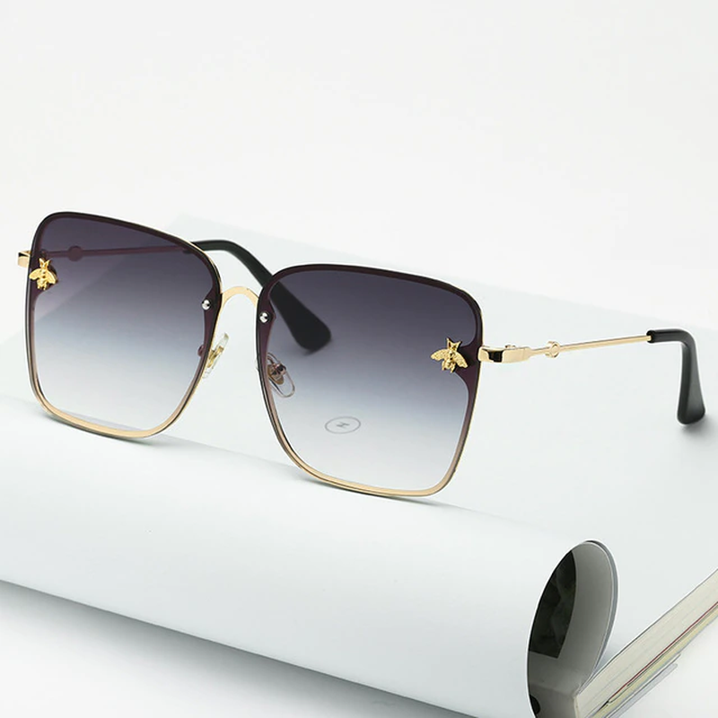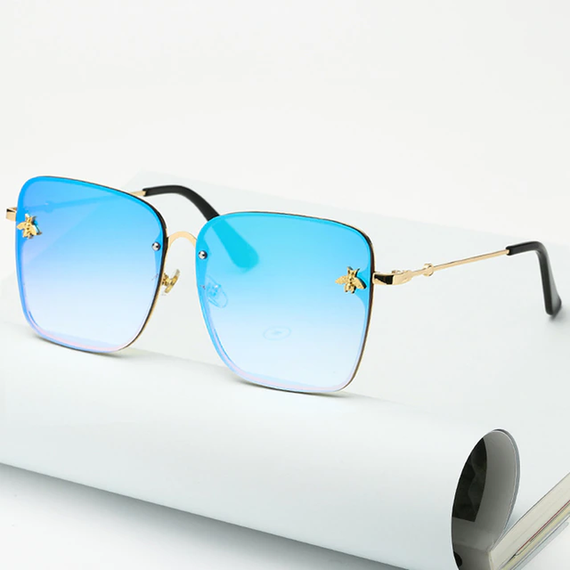 New Fashion Lady Oversize Rimless Square Bee Sunglasses Women Men Small Glasses Gradient Sun Glasses Female UV400