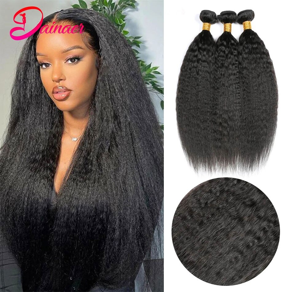 Peruvian Kinky Straight Bundles 3/4 Lot 100% Human Hair Bundles Remy Hair Extensions Human Hair Yaki Straight Hair Bundles