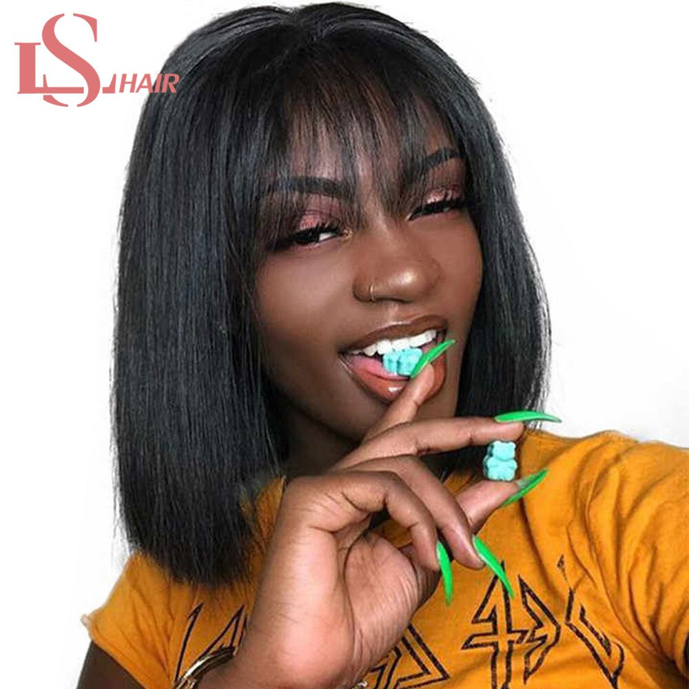 Brazilian Straight Human Hair Bob Wigs with Bangs Non Lace Full Machine Made Human Hair Cheap Remy Wigs for Black Women
