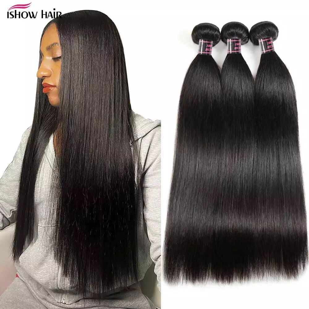 Ishow Straight Human Hair Bundles 28 30Inch 1/3/4 Pcs Deals Sale for Women Brazilian Straight Hair Bundles Sew in Hair Bundles